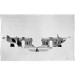 1 à 3. Plan et coupes, éch. 1/200. Plume et aquarelle. 260 x 570. |