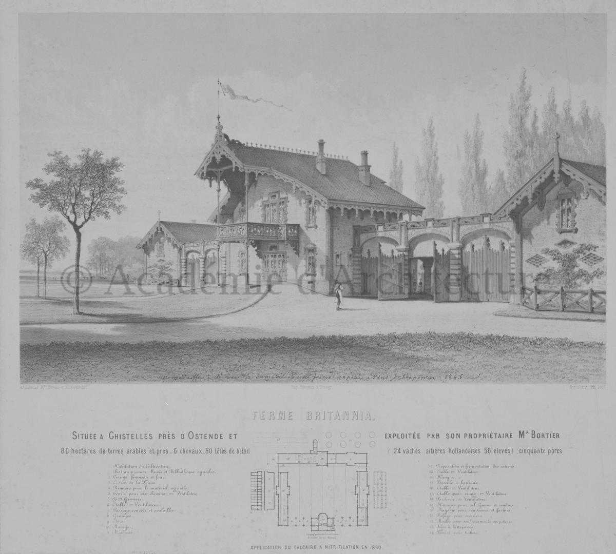 | Intitulé | "Ferme Britannia située à Ghistelles près d'Ostende, par Horeau et Alleweireldt". |