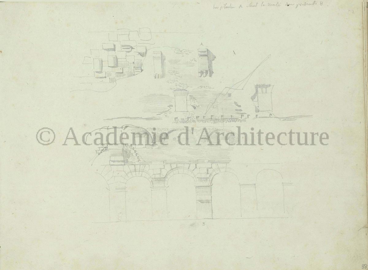 91330Carnet de relevés de monuments antiques.
